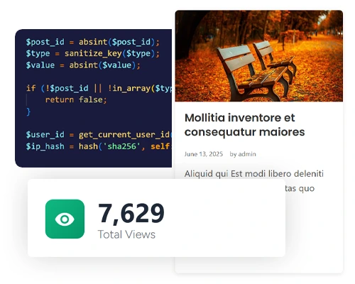 See Your Success Beautiful admin dashboard with live engagement metrics, top-performing posts, and detailed analytics. Know exactly what's working on your blog.